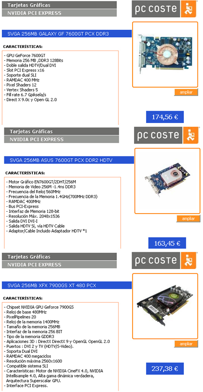 Del listado destaco lo siguiente (todas Nvidia PCI express).