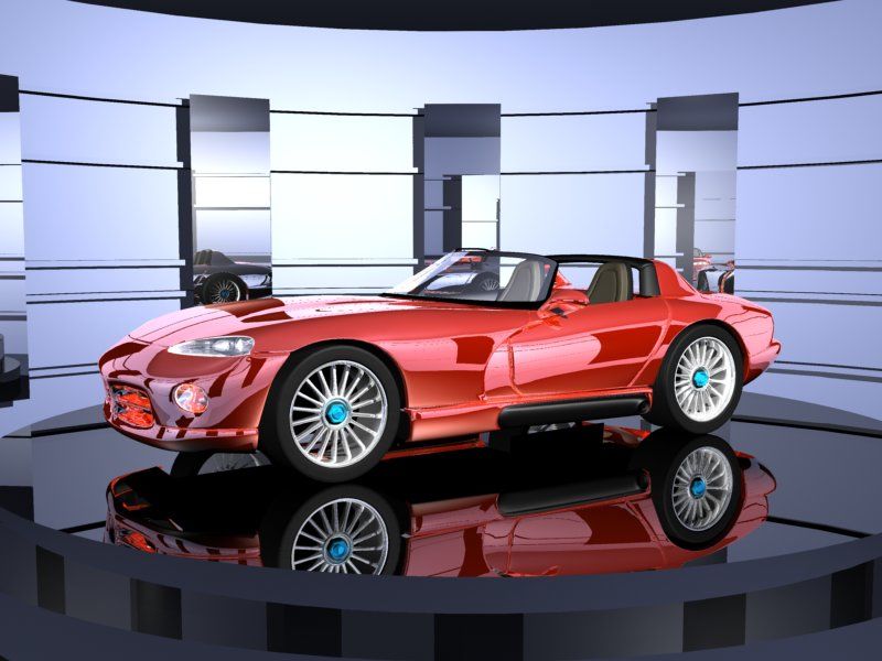 Respecto a los materiales, pues yo pondría muchos menos reflejos en la escena y, sobre todo, menos marcados. Parece como si la carrocería fuera un espejo tintado. No una pintura metalizada. Si lo ajustas más, mejorara mucho.