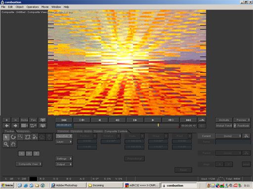 Pues nada, que se me ha fastidiado el Combustion. Resulta que estaba poniendo un sistema de partículas a una animación y al volver al Workspace me ha salido todo distorsionado. Crea que era un error con esa imagen, he probado con otras, bitmaps, vídeos, con otras partículas, he reinstalado, nada, el problema persiste.
