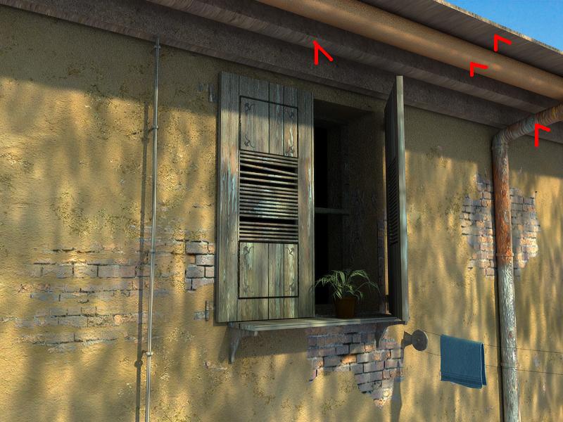 En cuanto a la ventana la textura está bien, pero si le marcaras un pequeño desplazamiento para que pareciese que tiene un poco de relieve, quedaría más realista.