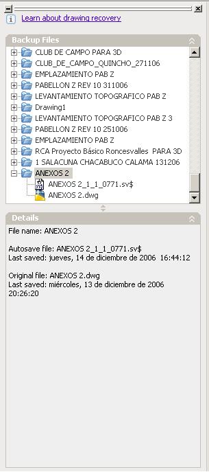 ¿Cómo agregar carpetas de archivos al drawing recovery en el 2006 y 2007, pues me he dado cuenta que las agrega solamente cuando el archivo se encuentra en problema (corte de energía inesperado, etc), ya que rescatar el *.sv$ que no sea desde el drawing recovery nunca he podido (inclusive cambiándole extensión a *.dwg) y la única manera es abriéndolo desde el este, se puede crear un archivo y inmediatamente dejar predefinido que se cargue en el drawing recovery? O una manera de poder abrir el *.sv$.