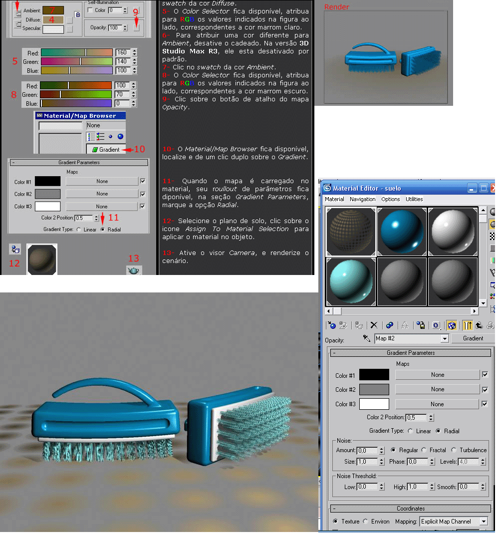 Hola gente, tengo un problema, no es urgente, pero me complica seguir unos tutroriales con imágenes de referencia, realizo todos los pasos siguiendo las indicaciones de los tutoriales, pero en el editor de materiales cuando pongo un bitmap me aparece multiplicado, al igual que cuando lo aplico al plano o al Mesh con UVW map, cuando lo cambo de tamaño en el editor no queda centrado y pierde la proporción, otro problema que me surge es cuando a un material en opacity pongo gradiente y marco radial, el resultado no es el que tendría que ser.