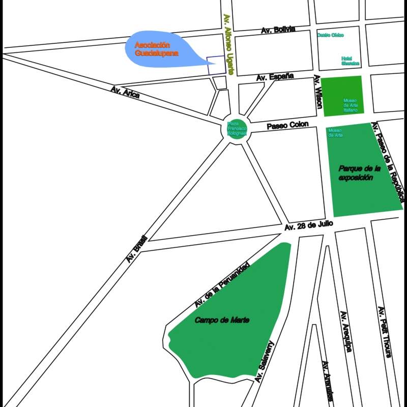 Asociación guadalupana, esquina entre las av. Alfonso Ugarte 1398.