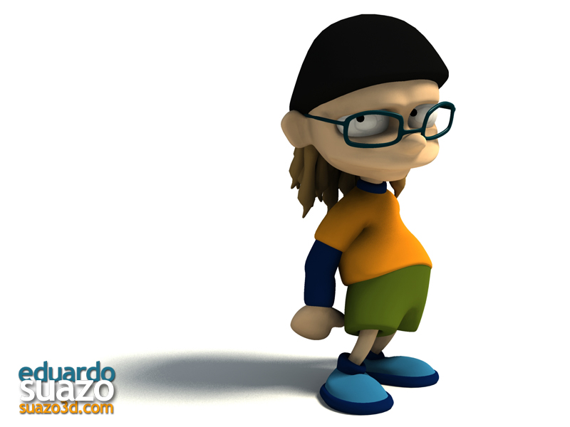 Éste ya está con la malla y el skin aplicado y con la dinámica del pelo (hay que mejorarla, pero bueno). También quería haber hecho la animación facial y la sincronización labial, pero es otra de las cosas que me está dando muchos problemas con el 3ds Max 9. Vaya.