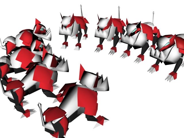 4) las patas están construidas con fémur, rodilla y tibia (no sé cómo se llaman estas partes en un perro). Puedes quitarle el cilindro usado como rotula y unir directamente fémur y tibia.