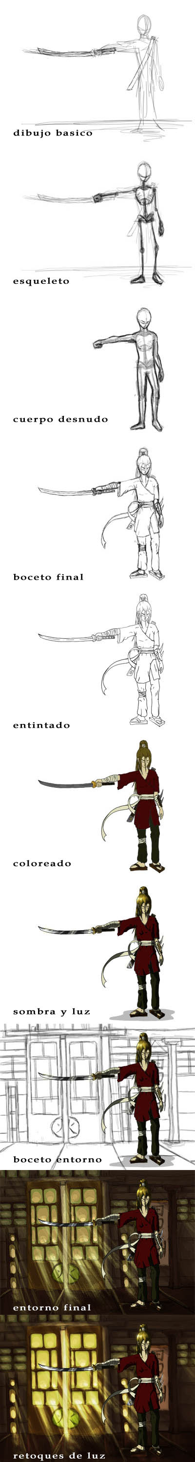 Este último, el de la espada, el color muy conseguido, aunque la anatomía en cuestión creo que podría mejorarse. Un saludo y ánimo.