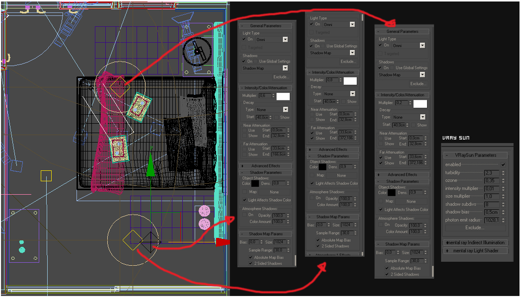 Aquí van os detalles use 3 omnis más una Vray Sun, con cámaras normales sin cameravray.