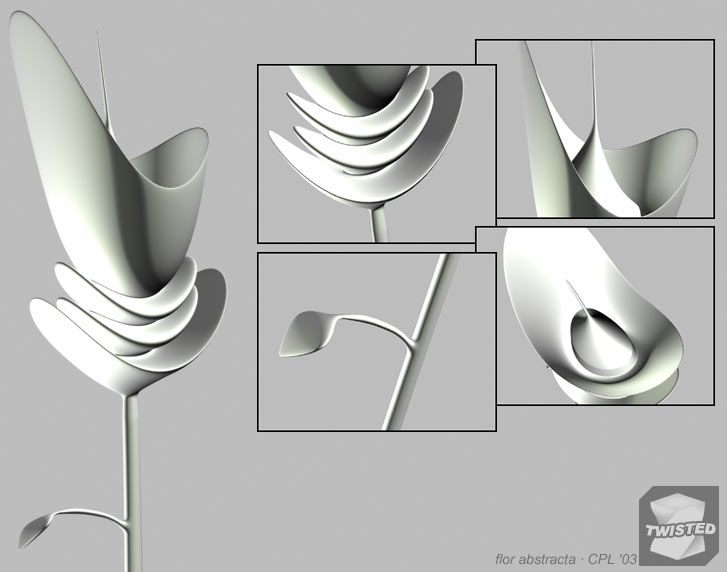 Gracias gente. Las divisiones en el tallo, Damesqlo, pues las tiene porque es el primer modelo medianamente serio que acierto a hacer (soy novato). Pensé que para curvar el tallo después vendrían bien (aunque la curvatura luego salió mínima al meter el modificador). Sin embargo, al final la malla queda inútilmente densa por esa parte y en la rama de la hoja, mientras que en los pétalos superiores ahora creo que tendrá que haberlos detallado más antes de meter el MeshSmooth. Tampoco domino todas las posibilidades de Edit Poly aún. Poquito a poco.