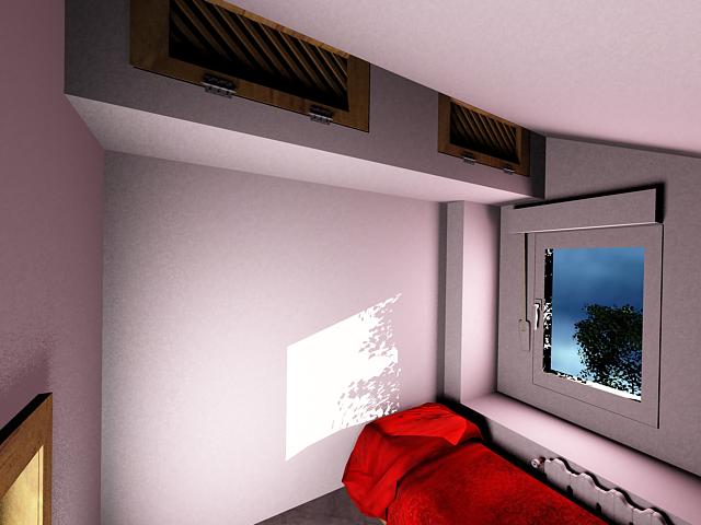 He puesto 2 luces Vray con los mismos valores (los de la imagen), una desde la puerta y otra desde la ventana, las dos hacia dentro de la habitación. También una luz directa, que es la que entra por la ventana y se refleja en la pared y parte de la colcha, en teoría es el sol. Gracias de nuevo salado.