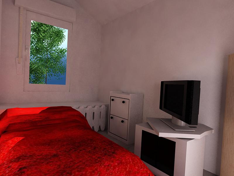 Bueno lo prometido es deuda, esta es la habitación de mi apartamento. Está hecha con 3d Studio Max 7 y Vray. Lo cuelgo como trabajos en proceso porque no sé a vosotros, pero yo nunca consigo acabar del todo nada de lo que empiezo, una mejora aquí, añado otro mueble, allá.