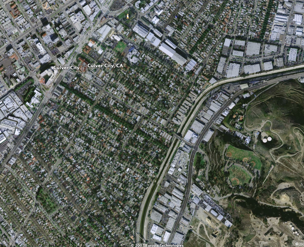 Yo vivo fuera del mapa, más abajo a la derecha, pero ahora estoy (y trabajo) justo en la esos edificios que están arriba a la derecha de la [i], que es culver Studios, la famosa hacienda de lo que el viento se llevo.