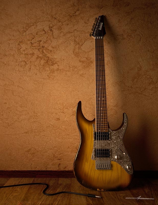 Bueno, después de un sinfín de mensajes en la sección wip aquí os dejo el render final de la guitarriquis. Para el que no lo sepa, todo el modelo y las UV están hechas con Blender y el render es Maxwell.