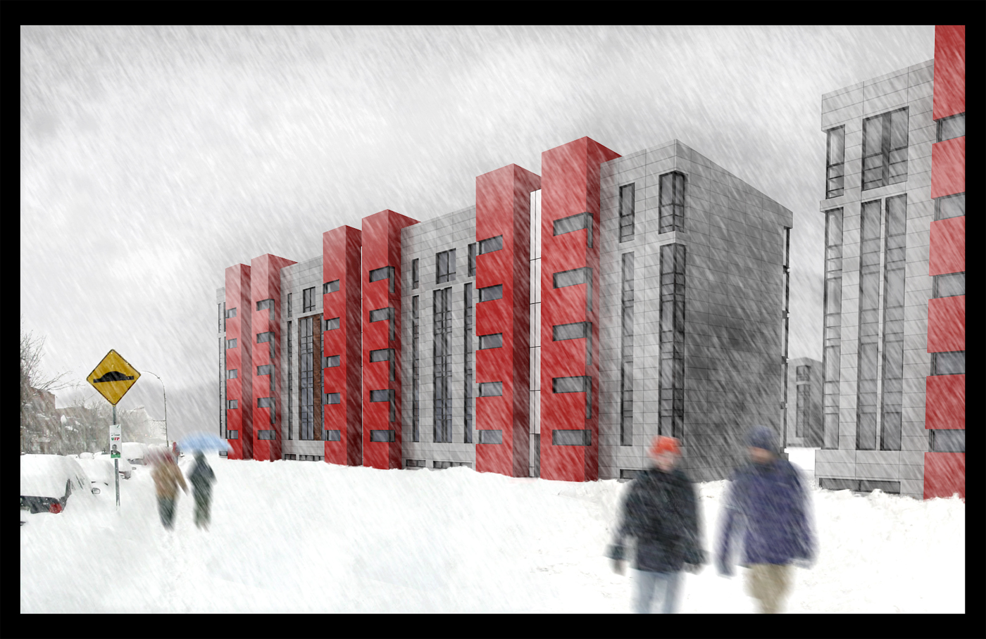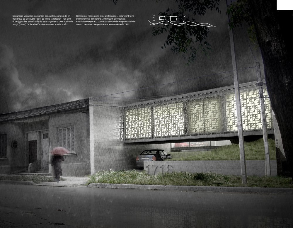 Un render de infografía lloviendo, me parece algo osado y genial, quedo con el ambiente exacto, me gustó mucho.