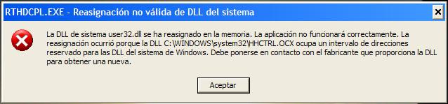 No sé qué pasa que desde hace un rato cada vez que enciendo el ordenador me salta esta ventanita. Husmeando por Google he descubierto que el rthd, es el controlador del audio y que hctrl. Ocx es algo del active x. Pero hay me he quedado. He probado a poner una user32. Dll nueva, pero no sirve de nada.