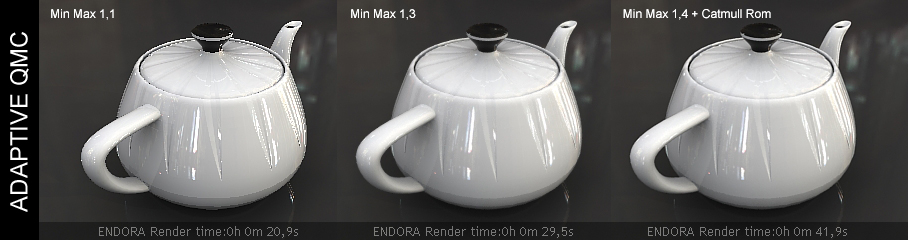 adaptive subdivisión: realiza menos de una muestra por píxel, lo que nos permitirá igualar la calidad de alisado en comparación con adaptive Quasi Monte Carlo.