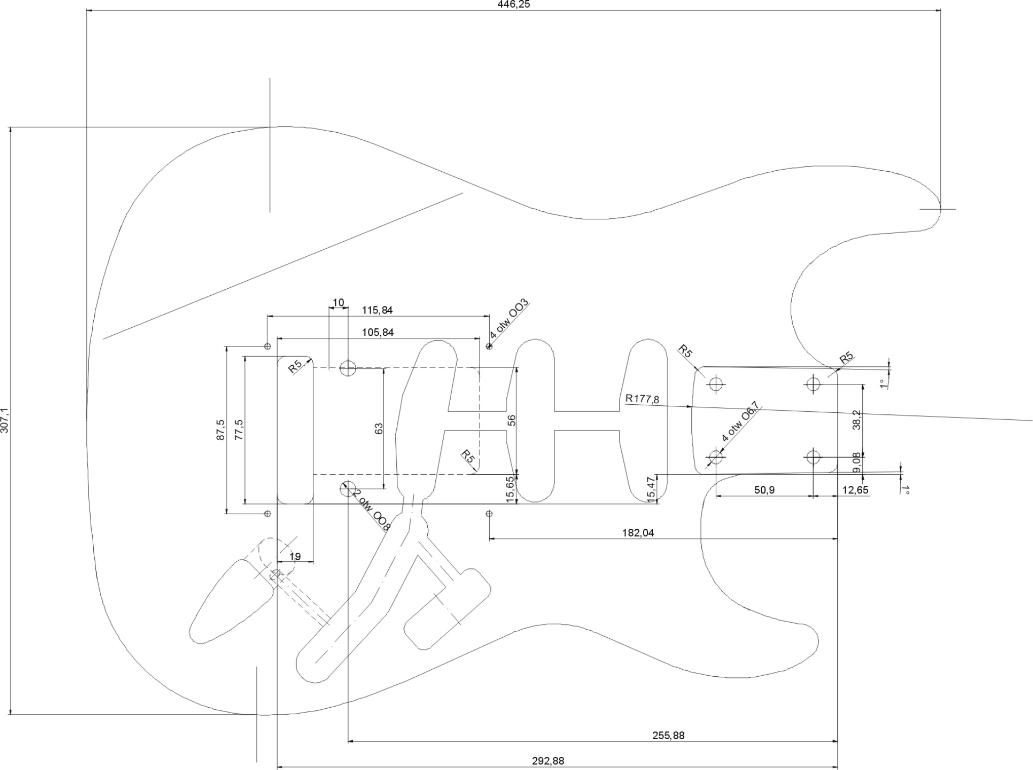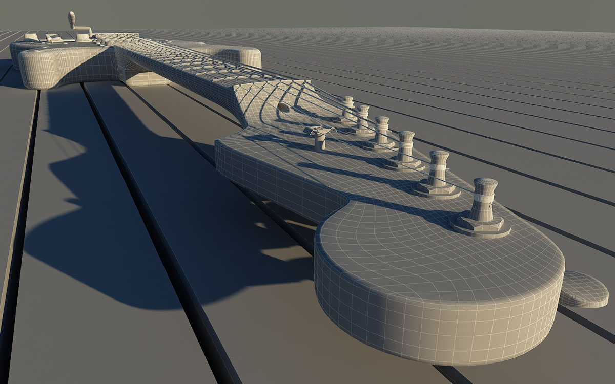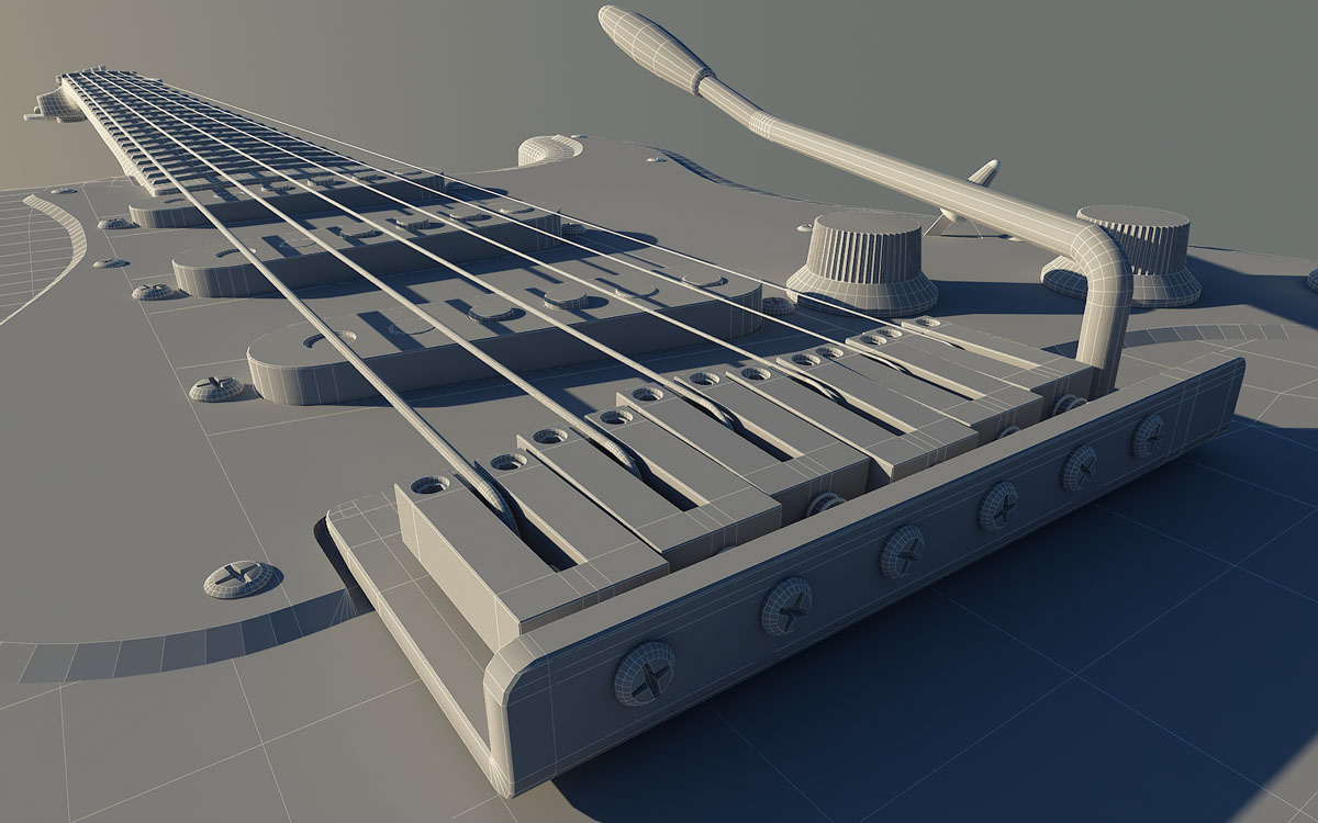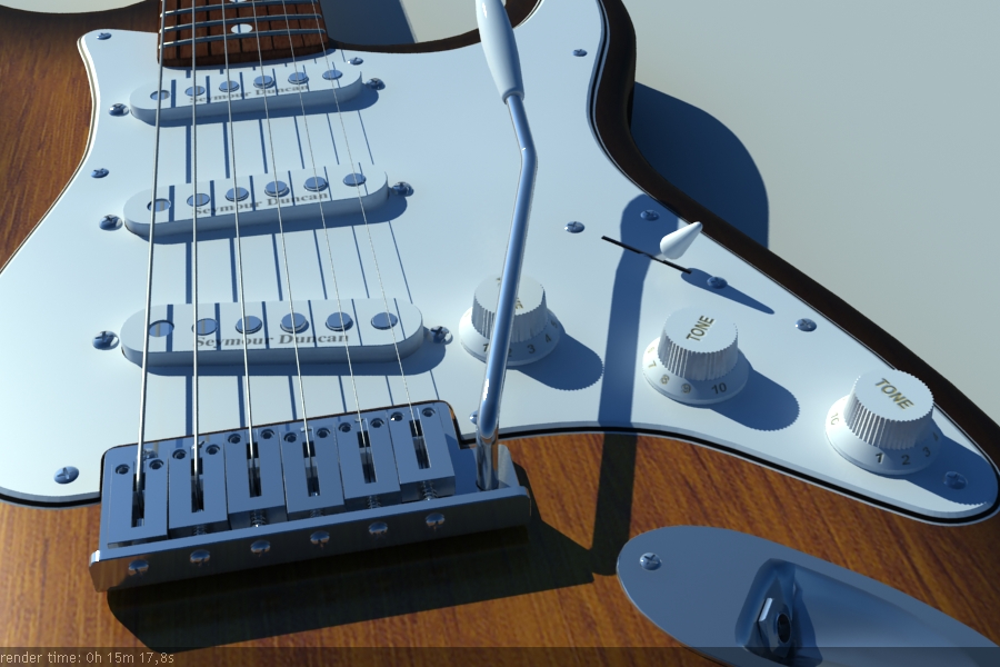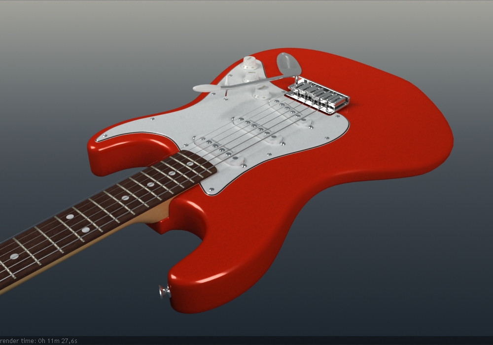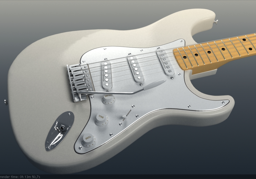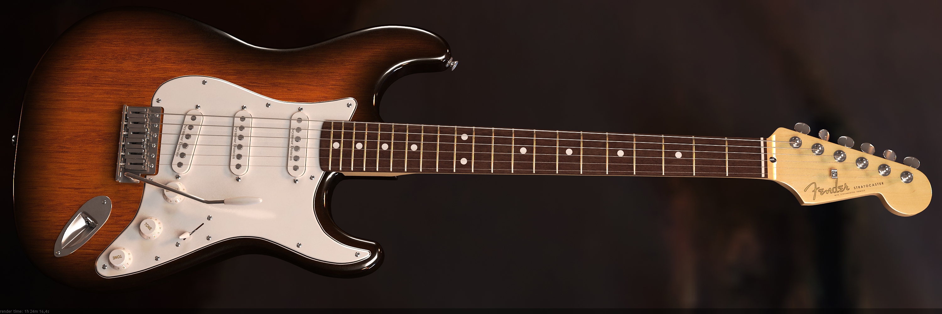 Con respecto a lo del proceso no sé muy bien a lo que te refieres, si a detalles de las mallas de cada uno de los componentes de la guitarra o al paso a paso desde el comienzo de su creación (esto último creo que sería más complicado a estas alturas, habiendo sido además un proceso de aprendizaje en el que he ido adelante y atrás en numerosas ocasiones). De momento lo que puedo hacer es ponerte los blueprints que usé en principio para modelar (faltan el de algunos detalles como el puente, el clavijero, en estos casos me fui fijando en fotografías que encontré por internet y en mí propia Fender, que, si no lo he dicho aún es como la de la derecha del todo de la composición).