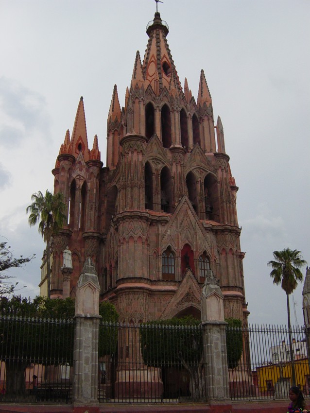 Es el templo de san Francisco, y sí, es una de las cosas más llamativas de san Miguel por su arquitectura tipo ecléctico o gótico tardía (no sé cuál es el estilo exacto, después se los investigo).