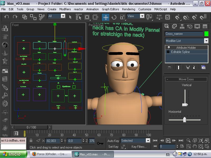 Hola necesito saber cómo hacer un rigging facial, he hecho muchas animaciones faciales con Morph creando cada uno de los fonemas para animar, pero últimamente baje un modelo de internet, (max v.3) en el cual el animado de la cara es creado mediante controladores que mueven los ojos y cada uno de los músculos, o sea se que se hace con un Morph cada uno de los movimientos, pero la pregunta es como hago para controlarlos con shepes, o sea se crea un estilo de controles parecido al de abajo, se debe hacer creo que con atribute holder.