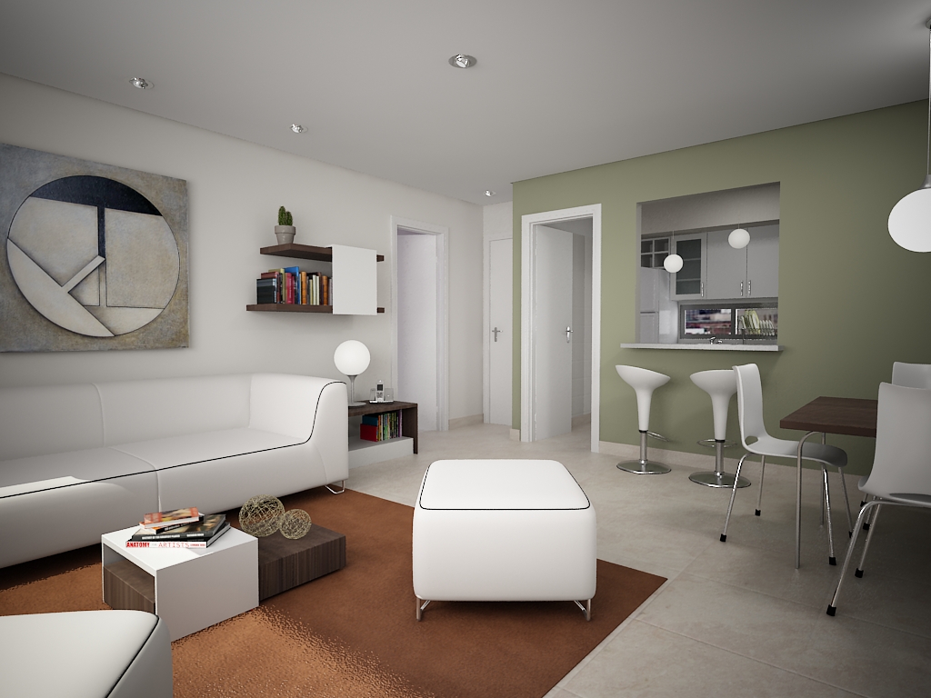 Creo que te has colado un poco con la luz en general. Baja un poco la auto iluminación de las lámparas y el brillo del suelo. No sé porqué será, pero las líneas en general parecen que no están rectas. No soy precisamente la más indicada para a consejarte, pero, es lo que veo. La verdad es que es un bonito diseño y esos detalles lo fastidian un poco. Ánimo y suerte.