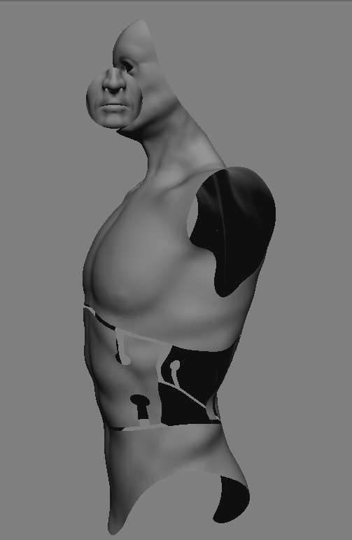 Quisiera hacer un modelo mitad humano mitad máquina, voy a usar Rhinoceros y XSI, la parte humana ya está casi lista ahora viene integrar lo mecánico con lo que tengo humano.