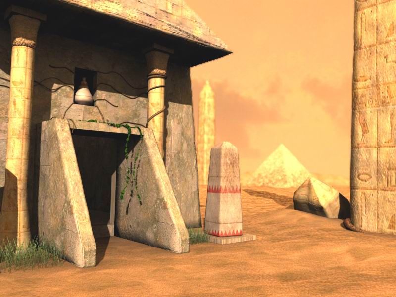 Si alguna vez habéis estado en Egipto, veréis que la escena no está sobre iluminada: es Egipto el que está sobre iluminado. La escena me ha gustado mucho, no tengo nada que objetar que no hayan dicho ya los mensajes anteriores. Tal vez algún escorpión del desierto rondando a la sombra del obelisco, y añadir el mismo efecto de tierra que has puesto en el obelisco a la entrada del templo y a sus paredes en general (ya sabes, la arena que mueve el aire y se va acumulando contra las paredes hasta dejarlas un poco enterradas). Un saludo, quita los pingüinos voladores y pon las naves de Stargate. Luego le dices a DVD que te preste su engendro cibernético y lo colocas a la entrada del templo en postura de gorila.