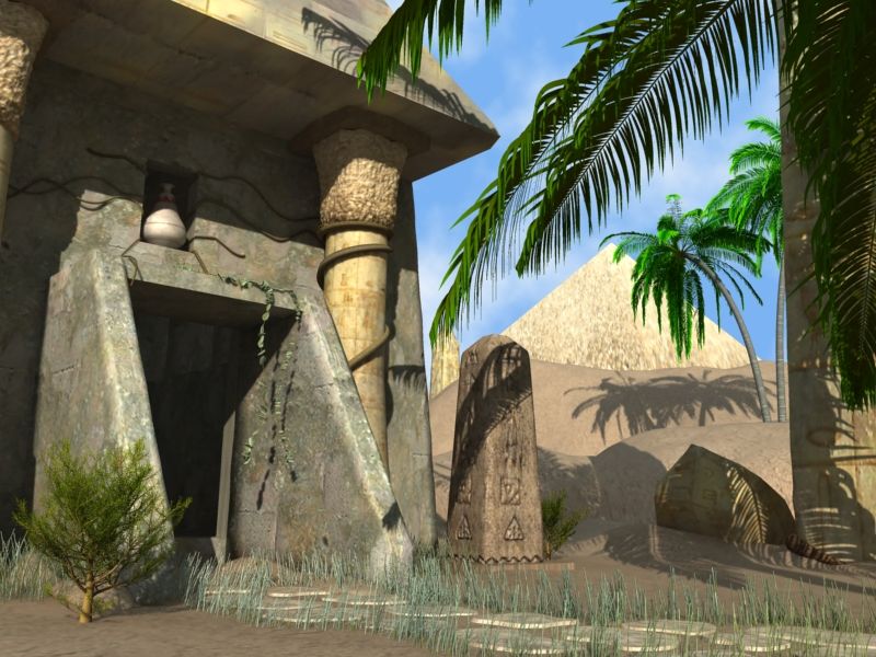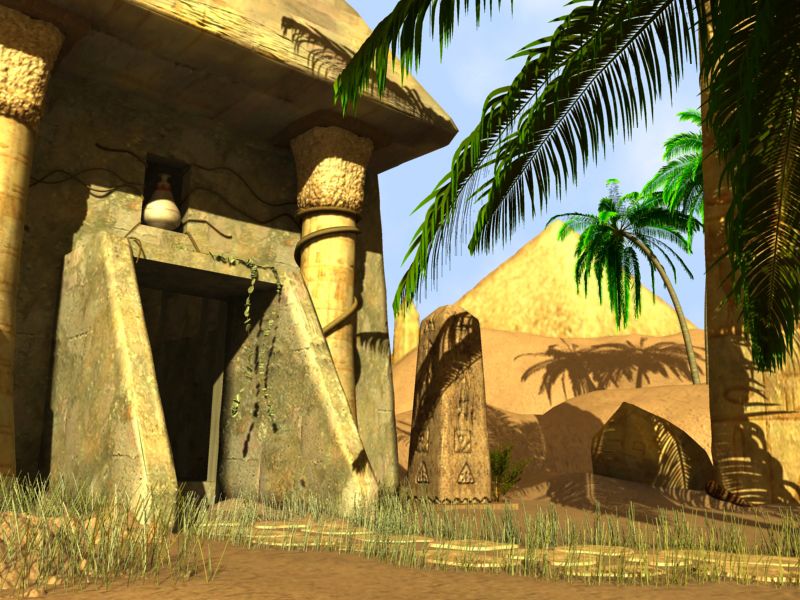 Te voy a hablar desde el punto de vista arqueológico que es el que mejor domino, para algo hice arqueología y la egiptología es mi obsesión particular, yo no pondrá los hierbajos alrededor del camino de entrada al templo, y reduciría el tamaño de las piedras de éste.