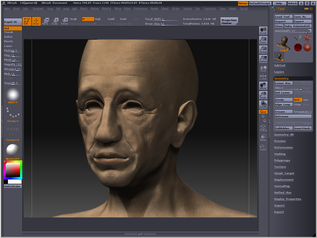 El resultado no me gusta, y no tiene el detalle del modelo de ZBrush. Todo esto lo he seguido en este tutorial: tutorial: pinup - Zbrushinfo.