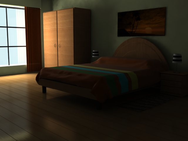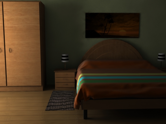 Buenas, podrías decir con que estás trabajando max? Vray? Mental? Yo pondría la parte más baja de las puertas del armario, alineadas con la parte más baja de los cajones, y no pasaría la colcha de la cama por encima de la almohada, porque parece que has hecho la cama corriendo, pondría la almohada por encima de la colcha. Un saludo.