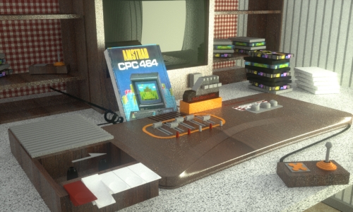 Hola de nuevo, llevaba ya un tiempo sin publicar, y ayer me dedique a hacer esta escena por puero entrenetimiento con Cinema a ver qué salía, intente hacer una consola retro, mezcalando cosas de ordenadores de los años 80 como la grabadora y el joestyk de palanca.