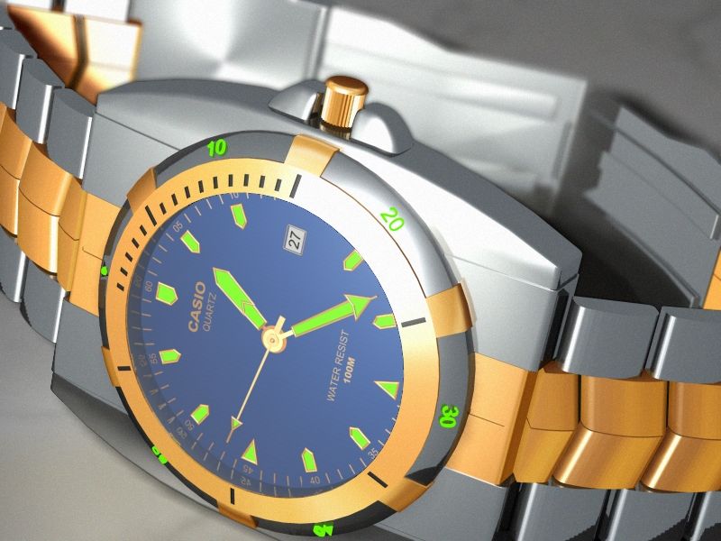 Hay, los Casio, que sería de mi vida sin ellos. Te hubiera quedado una pizca (pero sólo una pizca) mejor si en el cristal del reloj (que parece no tener) le pusieras una mayor reflexividad y utilizaras un mapa de entorno bastante chulo (un trozo de habitación cerca de una ventana, por ejemplo) como mapa de reflexión para todo el reloj. Aun así, se ve estupendo. Un saludo y enhorabuena.