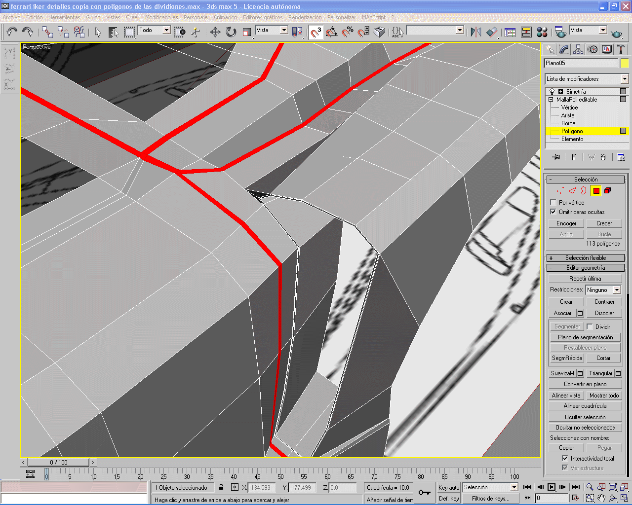 Son las puñeteras subdivisiones para realizar las separaciones del capó, las puertas y demás son un coñazo, me da que me ha pasado por sobrecargar mucho la malla en baja poligonización.