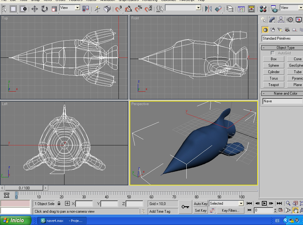 Y luego la nave echa en Low poly también y con el modificador Edit Poly (esta última se me resistio una vez, pero fue error mío a la hora de extraer un polígono.