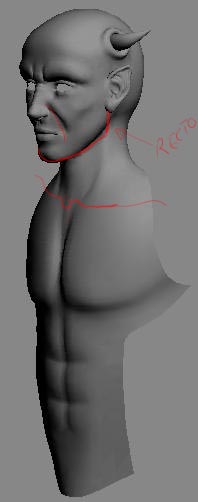 Está quedando bien. Aunque yo secundo la idea de Infart de no hacer un demonio tan refinado -entre comillas, pero en este teclado no me van los números - Y darle un toque más bestia. Es decir, dar otra vuelta de tuerca al concepto de personaje, porque puede quedar muy chulo.