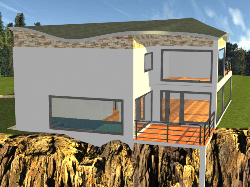 En qué programa haz echo eso, se nota que tienes muchas ganas por hacerlo bien, deberías escoger un mejor proyecto de casa porque esa esta horrible, es un mal diseño, esas cubiertitas, que son cascaras de hormigón? (tan gruesas) y que hace ese soporte a un lado si no es necesario, se soportan solas, parece trabajo de estudiante de primer año de arquitectura, pero del primer día en la u.