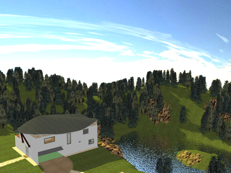 Con toda modestia, falta mucho camino, no es el hecho que pongas gramas, piedra, árboles, ya tienes montado un proyecto, es cierto que comienzas, pero esto no es armar una casa y pintar con max, esto es algo más serio, y la verdad queda mucho camino por recorrer las imágenes tienen una maslas vistas, demasiado peso de unas cosas, por ejemplo, la 2,3,4,5 imagen, demasiada casa, demasiada piedra, demasiada grama, a veces hay que fugar un poco más la perspectiva para dar esos toques, reales, recuerda que así no se ven las cosas en la realidad, y si quieres vender un proyecto de eso se trata hacer que la gente se siente e imagine en el ambiente que ofreces.
