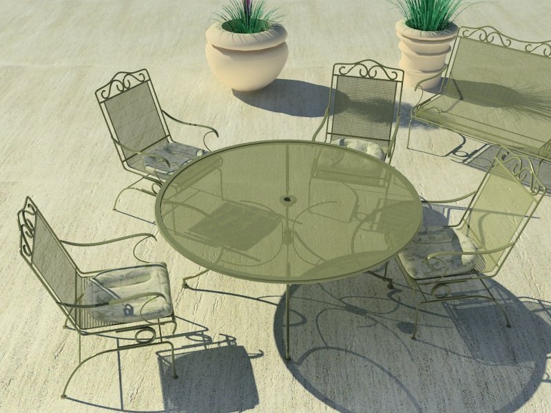 Hola, soy nuevo en el foro, y para presentarme les muestro este juego de jardín que hice (*.ace) tiempo en 3ds Max 8 y Vray 1.5, espero críticas, sugerencias, piropos.