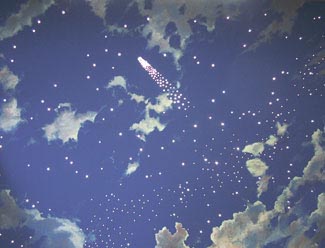 Con el blend yo creo que quedaría bien (primer material, el del color del techo, el segundo con un lghtmtl y la máscara, pues búscate alguna en internet con estrellitas o hazla tú en Adobe Photoshop con algún pincel de esos con efectos).