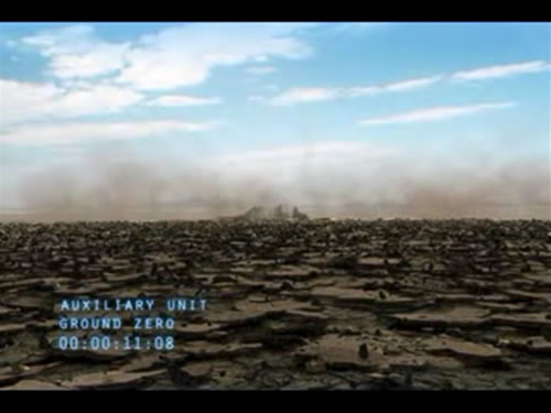 Everything moving is CG (birds, debris etc), everything still is from a photograph (mortal kombat, shanty, car).