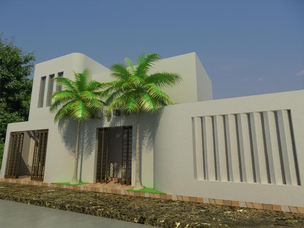 Hola, a mi humilde opinión, creo que has mejorado la textura blanca. La banqueta, me supongo que, no la has terminado, las palmeras no se ven bien, en ese espacio tan reducido, prueba, mejor con las que tenias, cambiando las texturas, y alturas, otra cosa que te podría servir, es utilizar un modificador de cámara, para que los muros salgan rectos, y no en perspectiva, en cuanto a la altura de la cámara me parece mejor como la pusiste en la segunda vista. Un saludo.