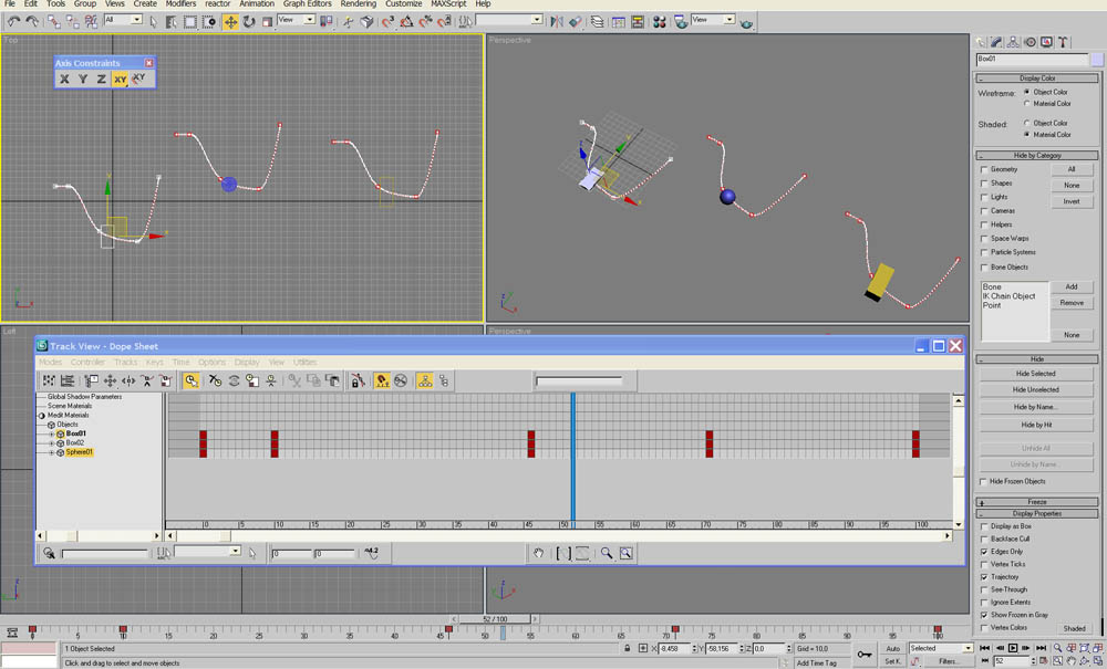 Gracias por tu respuesta, el problema de los dummies es que son objetos fantasma que igual hay que animar, y situar en el lugar del objeto original y después linkear el objeto a este fantasma, pero tengo que crear un montón de dummies pues, aunque la trallectoria de todos los objetos es la misma se sitúan en lugares diferentes del plano y en momento diferentes, ya que a de verse cómo se va montando todo el tinglado. Recuerdo que era fácil, pero no encuentro la opción de hacerlo.