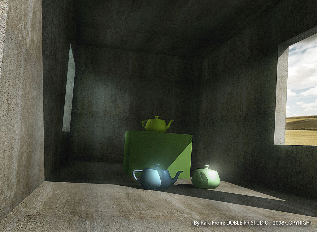 Darq: Lo he realizado con 3ds Max 8, luces estándares de max y Scanline para el render, y una corrección con Adobe Photoshop.
