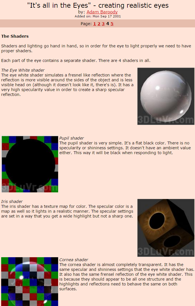 Hola amigos, alguien me podría ayudar a encontrar un tutorial para crear un buen par de ojos, con iris, realista y todo eso en 3ds Max.
