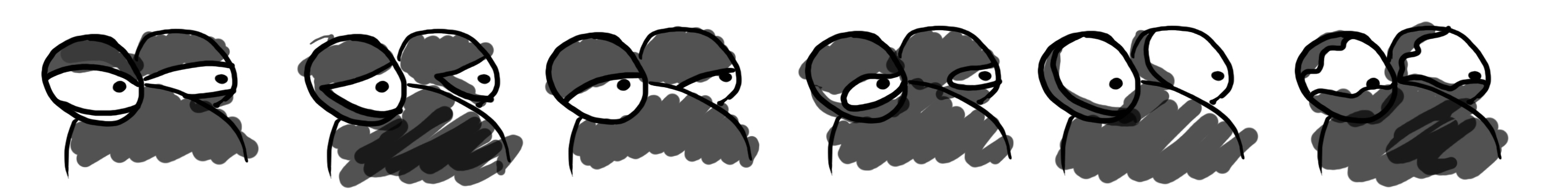 Buenos días gente. Les traigo una consulta que me está volviendo medio loco, tengo un personaje que estoy armando en 3dsmax 9 que tiene los ojos salidos, estilo la ardilla de la era del hielo, la cuestión es que la única forma de expresión que puedo darle es con los párpados, no con cejas porque no tiene. La cuestión es la siguiente yo armo muchos Morphs de los párpados para poder generar cosas como las que muestro en el dibujo abajo, el problema es que, al momento de empezar a combinar estos Morphs, los párpados se van fuera de la esfera del ojo y deja de servirme, la otra es que genere alrededor de 105 Morphs y ponerlos de a uno sin combinarlos, y no da.