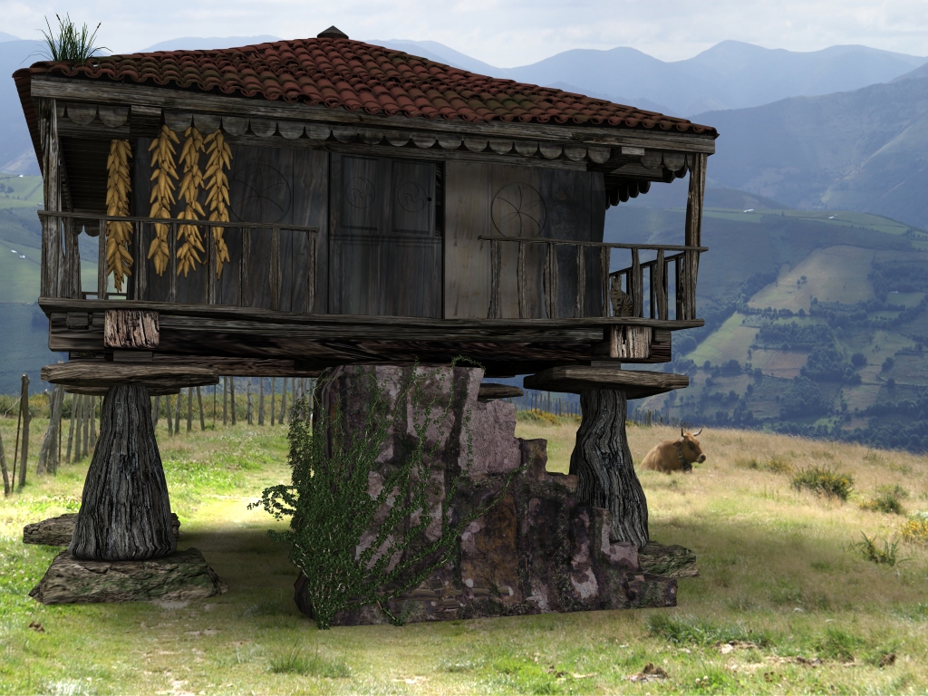 Hola a todos, aquí os dejo un horreo típico asturiano que estoy haciendo con LightWave, aunque todavía me queda trabajo, quiero enseñarlo para ver que os parece, sé que tiene fallos de texturizado, la verdad es que el tema de los UV me cuesta un poco. Bueno cuanto más me podáis decir mejor, os doy las gracias de antemano.