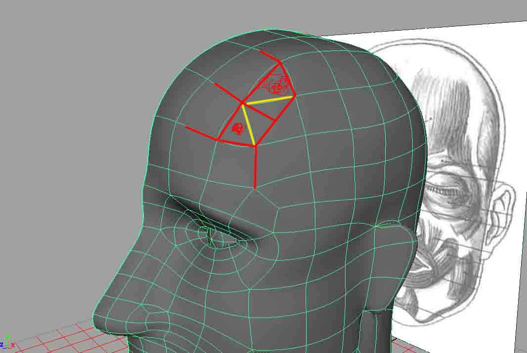 Hola qué tal? Tengo un problema con mi cabeza (la que estoy modelando). Tengo aquí en la frente dos triangulillos que me son tíozetes (marcados en rojo), cuando aplico Smooth me joden un poco.