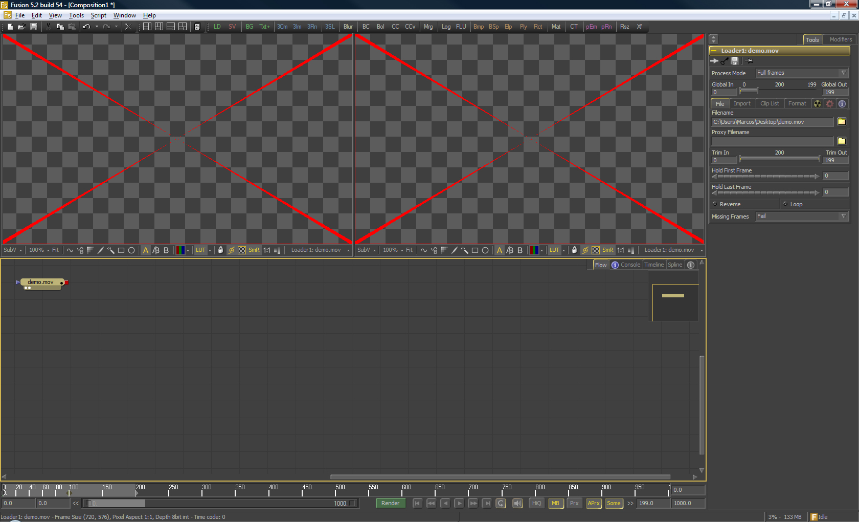Hola después de solucionar el tema de LightWave me encuentro con este otro problema, que al no estar muy puesto en fusión pues no sé a qué se puede deber, el tema es que instalo fusión con vista 64x, me lo instala bien, lo abre y parece que está todo bien, pero cargo algo y en los monitores aparece una x roja que no se quitar ni a qué se debe, adjunto una captura de pantalla para que lo veáis para ver si me podéis echar una mano. Gracias.