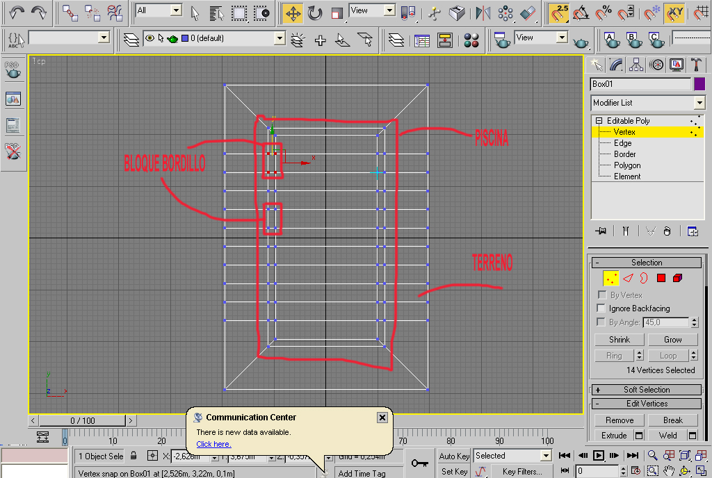 Hola a todos/as. Voy a intentar hacer la piscina que Fran García hizo en este foro en una trabajo suyo llamado casa rural. No confío nada en mis posibilidades y por eso espero que la gente que vea que meto la zarpa (que será en muchas ocasiones) me eche una mano y me ayude un poco, me corrija etc. Bueno sin más. Hoy sólo voy a hacer una caja, un box. La fotografía de referencia es esta.
