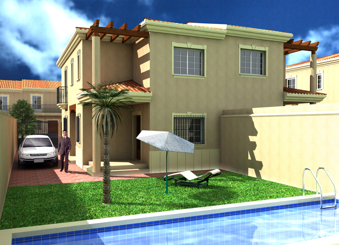 Igual creo que debes corregir algunas cosas más. Fíjate en el muro de la derecha, esta inexplicablemente iluminado el borde inferior. Las ventanas quedaron mucho mejor que antes, los tonos siguen siendo muy fuertes (quizás lo puedas solucionar con el amigo Adobe Photoshop), el cielo no encaja bien (prefería el del render anterio), el agua también esta media rara. El auto y el Robocop que pusiste no me convencen mucho, pero le dan más vida a la imagen de todas maneras.