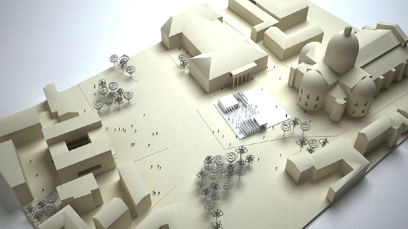 El plan a: un material Vray a pelo, con un color crema claro en difuso, y los matices los da el tipo de iluminación. Plan b: si necesitara forzar un poco más esos matices de luz, añado un ruido suave bitmap generado en Adobe Photoshop en el Bump. Plan c: un poco de reflexión extra. En el caso de la maqueta del fascio, usé la b.