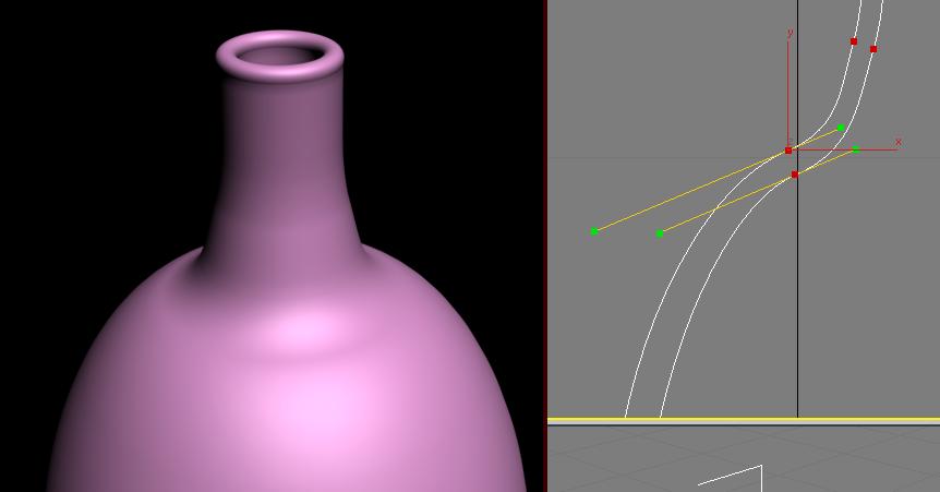 Tengo un problema con el señor beizer. Estoy intentando modelar un matraz, pero me queda algo extraño en el cuello del mismo, parece como si se hundiera, cosa que no debería hacer. El vértice que da problemas es Bézier, también he probado con beizer corner, pero el problema se acentúa, y con Smooth no me da la forma deseada.